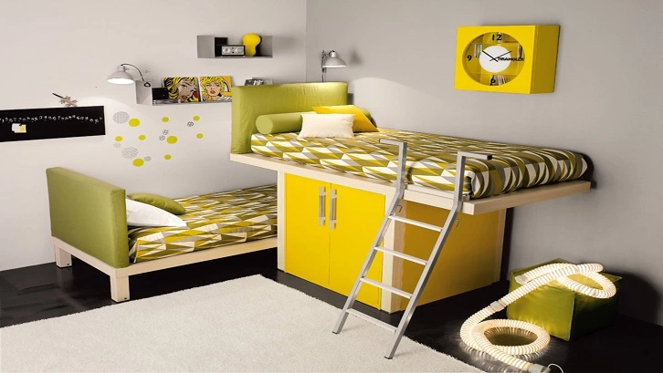 Si tiene dos hijos pero no queda otra habitación que pueda usar, entonces este mueble minimalista es muy digno de consideración. Use solo una habitación con un diseño eficiente.