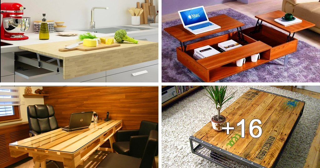Esta mesa de invitados de madera inicialmente parece ordinaria. Pero resulta que después de tirar de la parte superior, deja almacenamiento debajo.